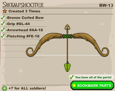 The Swampshooter is a Bronze Curled Bow that gives a plant boost to all soldiers. It is one of the Unusual Epic